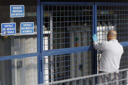 GIUGLIANO IN CAMPANIA, Italy (AP) - Patients, some wrapped in blankets that look like they came from home, moan in their beds. What appears to be medical tubing and a wad of gauze or paper towels litter the floor of San Giuliano public hospital, which treats coronavirus patients in a bleak town in Italy's Neapolitan hinterland.