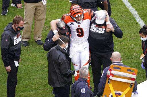Burrow, Cincinnati's franchise quarterback, was injured early in the third quarter when he was hit high and low by two Washington linemen after throwing a pass. His left leg bent awkwardly, and he couldn't put any weight on it, ending his day at 22-of-34 passing for 203 yards and a touchdown.