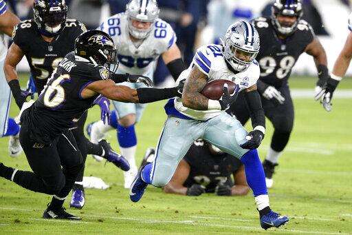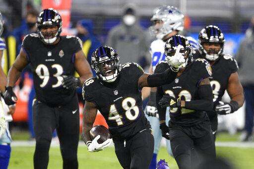 Jackson ran for 94 yards and a touchdown, and the Ravens returned from a COVID-19 outbreak to amass 294 yards rushing in a 34-17 rout of the Dallas Cowboys on Tuesday night.