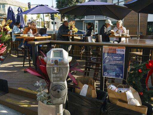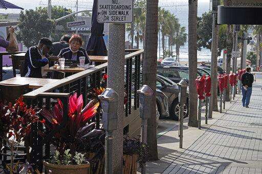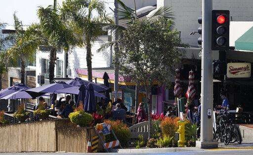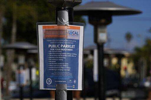 MANHATTAN BEACH, Calif. (AP) - In the Southern California oceanside city of Manhattan Beach, one arm of government is urging residents to stay home except for essential needs while another is encouraging them to get out and shop and even providing places where they can sit down to relax, eat takeout and watch the sun set on the Pacific.