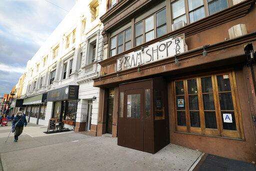 A pedestrian passes The Dram Shop bar, which is only open to private parties during the coronavirus pandemic in order to survive the winter, Tuesday, Dec. 1, 2020, in New York. (AP Photo/Kathy Willens) The Associated Press