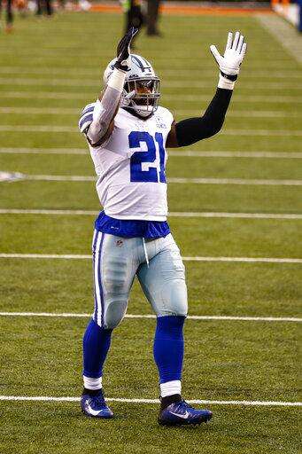Dallas Cowboys running back Ezekiel Elliott (21) waves to fans following an NFL football game against the Cincinnati Bengals in Cincinnati, Sunday, Dec. 13, 2020. The Cowboys defeated the Bengals 30-7.(AP Photo/Aaron Doster) The Associated Press