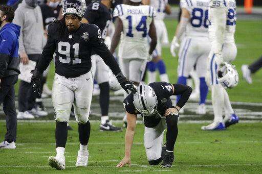 The Raiders lost 43-6 the following week in Atlanta; gave up 206 yards rushing to the winless Jets before winning in the closing seconds; and then gave up 212 more yards rushing to Indianapolis. Las Vegas had no sacks, no takeaways and gave up 7.7 yards per play.