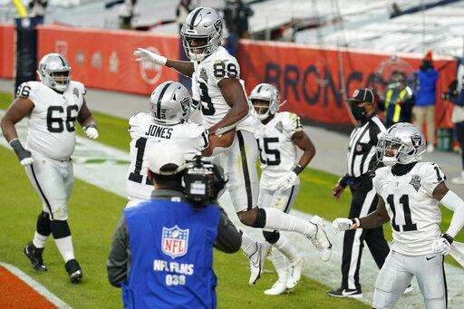 Darren Waller hauled in Carr's 2-point conversion pass with 24 seconds left Sunday and Las Vegas rallied past the Broncos 32-31.