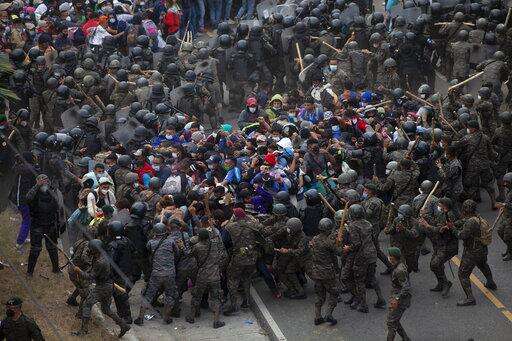VADO HONDO, Guatemala (AP) - Guatemalan police and soldiers launched tear gas and wielded batons and shields against a group of Honduran migrants that tried to push through their roadblock early Sunday.