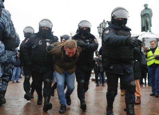 MOSCOW (AP) - Russian police arrested more than 3,000 people Saturday in nationwide protests demanding the release of opposition leader Alexei Navalny, the Kremlin's most prominent foe, according to a group that counts political detentions.