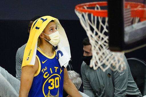 Golden State Warriors guard Stephen Curry (30) walks to the bench during the first half of an NBA basketball game against the Phoenix Suns, Thursday, Jan. 28, 2021, in Phoenix. (AP Photo/Matt York) The Associated Press