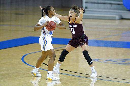 Preseason All-American forward Michaela Onyenwere scored a season-low seven points and didn't score in double figures for the first time in 17 games. But the senior had a big assist in the final minute, finding Bessoir for a wide open 3-pointer with 27 seconds remaining to put the Bruins up 59-54.