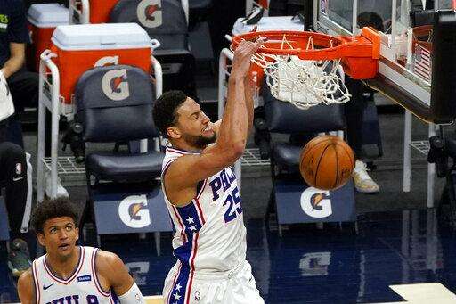 Timberwolves: The last time Minnesota beat Philadelphia was here on Nov. 17, 2016, the only win over Embiid. ... Jarrett Culver missed his second straight game with a sprained ankle, and Juancho Hernangómez was sidelined for the eighth consecutive game due to COVID-19 protocols. That left the Wolves without three of their top six scorers and four of their nine most-used players.