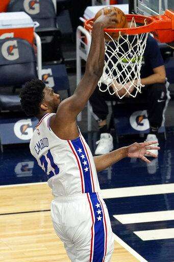 The 76ers could use more production from Ben Simmons, Seth Curry and Danny Green, who shot a combined 4 for 13 from the floor in the first half, but that wasn't necessary on this night. The three-time All-Star Embiid, who entered the evening fourth in the NBA in scoring, had his ninth 20-point half of the season, tied for the most in the league. He finished 10 for 19 from the floor.