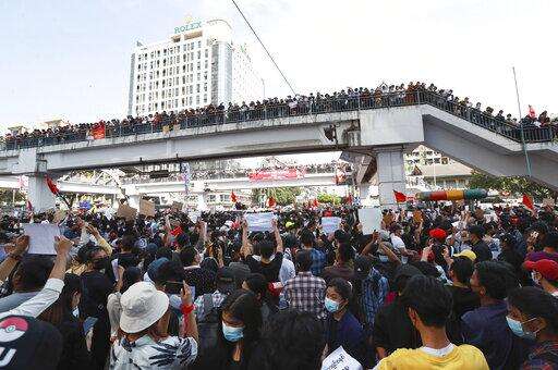 The growing protests recall previous movements in the Southeast Asian country's long and bloody struggle for democracy. On Sunday, tens of thousands of protesters rallied at Yangon's Sule Pagoda, which was a focal point of demonstrations against military rule during a massive 1988 uprising and again during a 2007 revolt led by Buddhist monks. The military used deadly force to end both of those uprisings. Aside from a few officers, soldiers have not been in the streets at protests this past week.