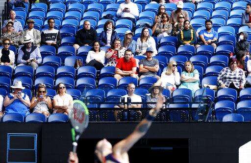 MELBOURNE, Australia (AP) - If Serena Williams somehow manages to conjure up another on-the-run, back-to-the-net, no-look, over-the-shoulder shot in her next Australian Open match, a local coronavirus flareup means there won't be any spectators to react with the appreciative applause and yells that greeted this one.