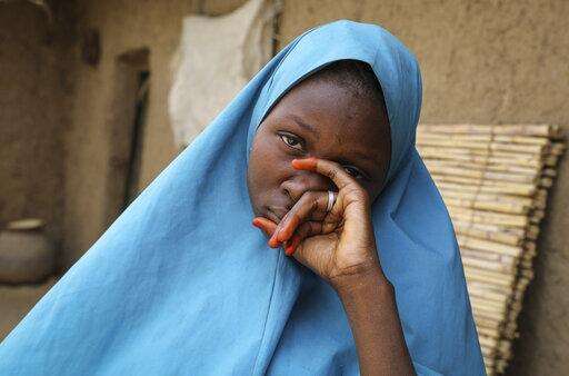 Student Masauda Umar, 20, who hid under her bed and managed to escape when gunmen abducted more than 300 girls from her boarding school on Friday, recounts her ordeal at her house in Jangebe town, Zamfara state, northern Nigeria Saturday, Feb. 27, 2021. Nigerian police and the military have begun joint operations to rescue the more than 300 girls who were kidnapped from the Government Girls Junior Secondary School, according to a police spokesman. (AP Photo/Ibrahim Mansur)