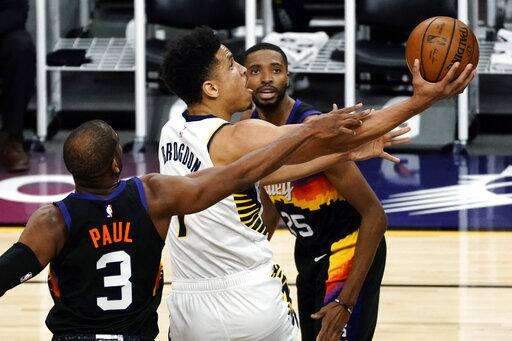 Pacers: Improved to 10-9 on the road. '¦ Indiana is 5-3 when playing on the second night of a back-to-back. '¦ The last time Indiana lost in Phoenix was January 2014. The Pacers have won five straight in Arizona. '¦ Former Suns player T.J. Warren sat out again with a left foot stress fracture. '¦ Jeremy Lamb also missed the game with a sore left knee.
