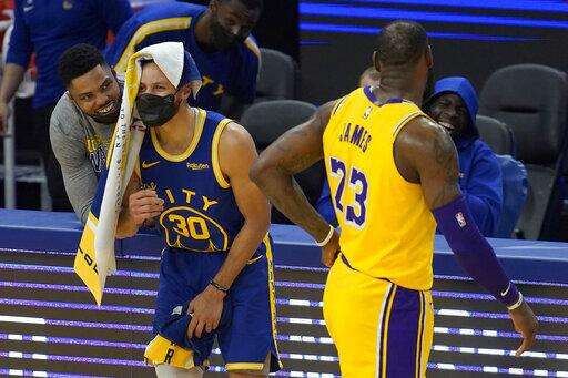Warriors: Golden State hasn't beaten the Lakers at home since a 115-101 victory on Feb. 2, 2019 - so never at the second-year Chase Center. ... The Warriors wrapped up their eighth back-to-back this season and third of five playing consecutive days at home. ... The Warriors are 25-1 when Green has a triple-double as he did Sunday.