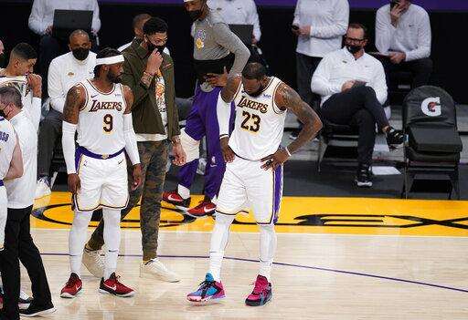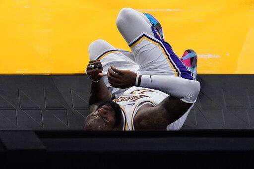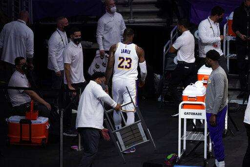 He immediately went to the locker room accompanied by the Lakers' training staff and Anthony Davis, who hasn't played since Valentine's Day due to a right calf injury.