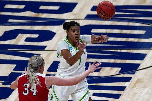 Nyara Sabally added 17 points and Sedona Prince 12 as the sixth-seeded Ducks (14-8) took advantage of their size on both ends of the floor to head into a second-round matchup Wednesday with third-seeded and 10th-ranked Georgia in the Alamo Region.