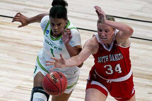 Oregon finished the game at 60% (27 of 45), making 6 of 12 from 3-point range and all seven free throws but had an unsightly 23 turnovers. South Dakota was 13 of 33 (42.4%) in the second half.
