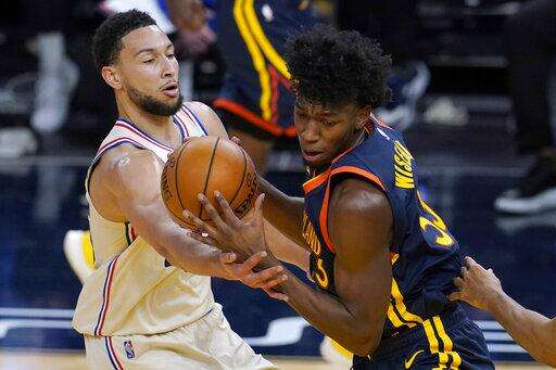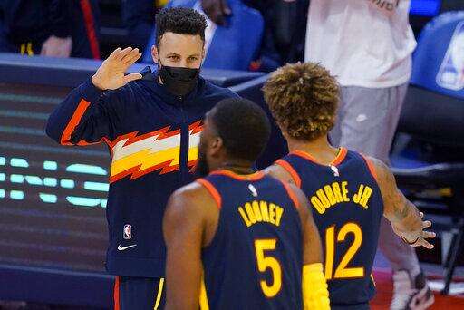 Warriors: F Eric Paschall, like Wiseman, returned from COVID-19 protocols. ... Poole was named to the All-NBA G League third team after averaging 22.4 points, 5.3 rebounds and 3.6 assists in 33.4 minutes over 11 games for Santa Cruz. He shot 45.1%. ... The Warriors have four straight games in the state of California. ... C Kevon Looney also was back after sitting out the second of consecutive games at Memphis because of a false positive coronavirus test.