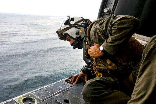 FILE - In this July 30, 2020 file photo a Naval aircrewman, looks out of a U.S. Navy helicopter while conducting search and rescue relief operations following an assault amphibious vehicle mishap off the coast of Southern California. A U.S. Marine Corps commander was fired Tuesday, March 23, 2021, following an investigation into the sinking of an amphibious assault vehicle in the ocean off Southern California that killed nine service members last year. (Lance Cpl. Mackenzie Binion/U.S. Marine Corps via AP,File) The Associated Press