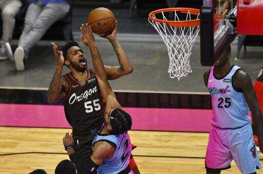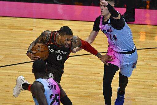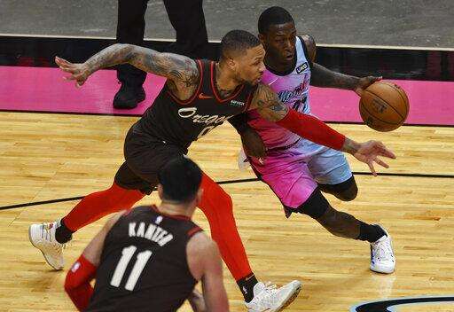 Trail Blazers: McCollum now has five quarters with at least 21 points in his career, including a 28-point first quarter against Chicago in 2018. The NBA-high for a first quarter this season is 22 by Denver's Nikola Jokic vs. Utah on Jan. 31. ... Former Heat forward Derrick Jones Jr., who started for Portland, spent a few minutes at halftime greeting staff in the Miami bench area.