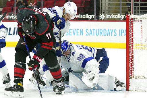 Hurricanes goalie James Reimer made 19 saves. Andrei Vasilevskiy stopped 36 shots for the first-place Lightning.