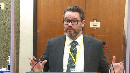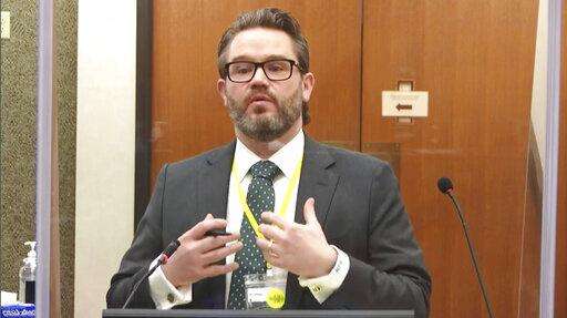 In this image from video, witness Senior Special Agent James Reyerson of the Minnesota Bureau of Criminal Apprehension testifies as Hennepin County Judge Peter Cahill presides Wednesday, April 7, 2021, in the trial of former Minneapolis police Officer Derek Chauvin at the Hennepin County Courthouse in Minneapolis. Chauvin is charged in the May 25, 2020 death of George Floyd. (Court TV via AP, Pool)