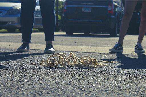 In this May 14, 2021, photo provided by Jeremiah Choka, about 100 racial justice activists staged a protest march in Fredericktown, Mo., questioning the death of Derontae Martin. The Rev. Darryl Gray, a St. Louis activist leader, said counter-protesters tossed two nooses at protesters and yelled racial slurs. Martin's mother, grandmother and racial injustice activists are questioning how the young Black man ended up shot to death in April during a prom party inside the rural Missouri home of a middle aged man with a history of bigoted social media postings. They don't believe the findings of a preliminary investigation indicating that he took his own life. (Jeremiah Choka via AP) The Associated Press