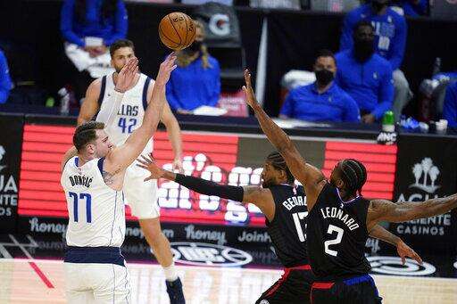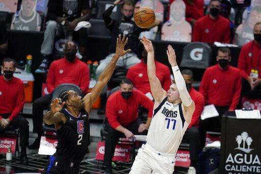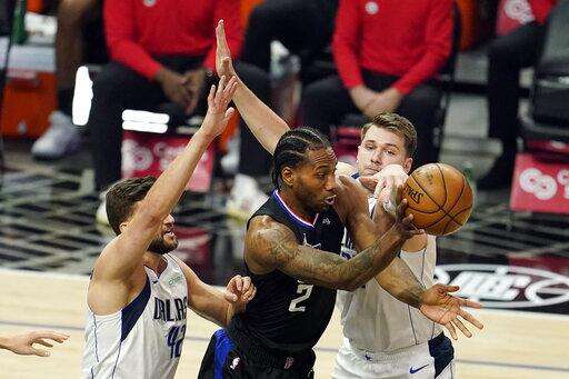 Clippers: Leonard's 18 points in the first were his most in a quarter in the postseason. ... Their 73 points was the second-most scored in the first half of a postseason game in franchise history. ... Kansas City Chiefs QB Patrick Mahomes, a Texas native, talked with Hall of Famer Jerry West at halftime. Doncic ran over to trade greetings with Mahomes as the crowd heckled him.