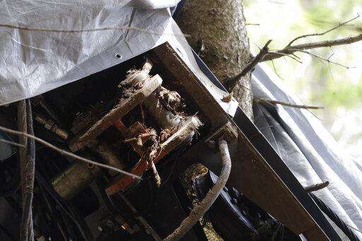 A rescuer takes a picture of a clamp that was placed on an emergency brake, as search for evidence continues in the wreckage of a cable car after it collapsed near the summit of the Stresa-Mottarone line in the Piedmont region, northern Italy, Wednesday, May 26, 2021. Police have made three arrests in the cable car disaster that killed 14 people after an investigation showed a clamp, placed on the brake as a patchwork repair effort, prevented the brake from engaging after the lead cable snapped. (AP Photo/Luca Bruno) The Associated Press