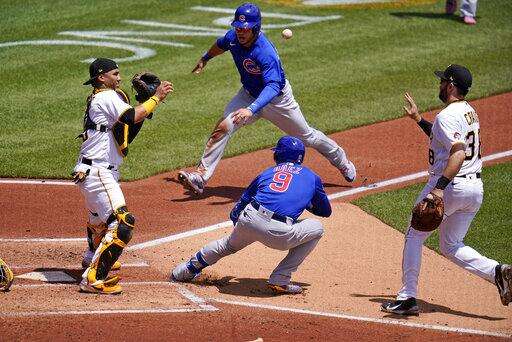 With a man on second, Chicago's Javier Báez hit a two-out grounder to third. The throw by Erik González pulled first baseman Will Craig a bit off the bag. Rather than run into a tag, Báez retreated toward home, and Craig started chasing him, even though he could have simply stepped on first for the third out.