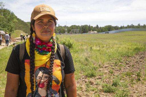 Activist and Attorney Tara Houska at an occupied Enbridge Line 3 pump station near Park Rapids, Minn., on Monday, June 7, 2021. (Evan Frost/Minnesota Public Radio via AP)
