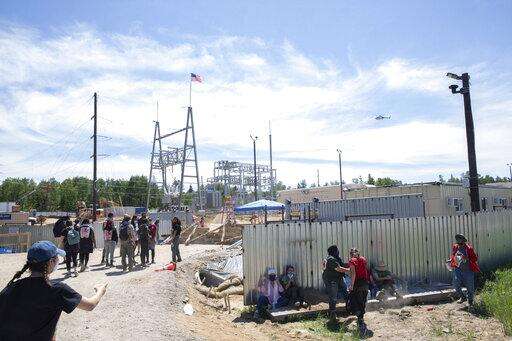 SOLWAY, Minn. (AP) - Hundreds of protesters vowing to do whatever it takes to stop a Canadian-based company's push to replace an aging pipeline blocked a pump station Monday in northern Minnesota, with some people chaining themselves to construction equipment before police began making arrests.