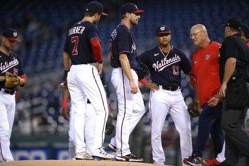 Scherzer threw a bullpen Monday that lasted only 10 pitches because his groin would not loosen up. The three-time Cy Young Award winner said it's up to manager Dave Martinez whether he goes on the injured list or simply has his start pushed back a few days. Scherzer tweaked his groin Friday against the Giants and got only one out.
