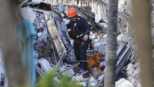 Teams of 10 to 12 rescuers at a time entered the rubble with dogs and other equipment, working until they grew tired from the heavy lifting, then making way for a new team, said Florida Chief Financial Officer Jimmy Patronis, the state's fire marshal.