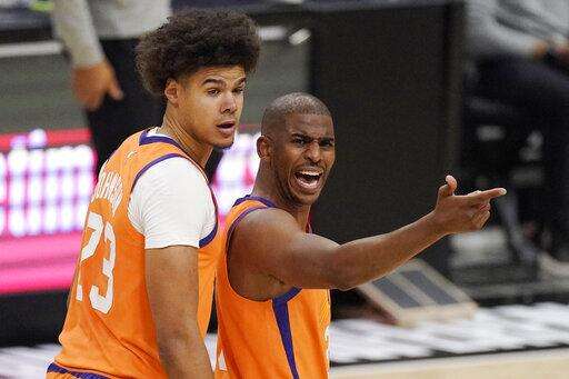 Suns: Fell to 10-3 in the playoffs, losing for the first time since May 27 against the Lakers at Staples Center in Game 3 of the first round. ... Booker and Beverley were called for double technicals in the third. ... Paul and Booker each missed their first six shots of the game and were both 2 of 10 with seven points each in the first half.
