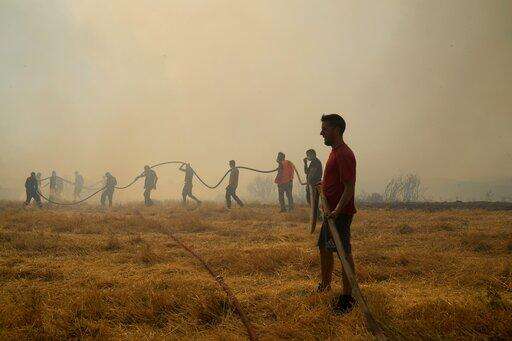 In Turkey, authorities on Friday evacuated six more neighborhoods near the Mugla province town of Milas as a wildfire fanned by winds burned some 5 kilometers (3 miles) from a power plant. Two other neighborhoods were also evacuated as a precaution later in the day, as another fire spread from the region of Yatagan, in Mugla, toward the edge of the neighboring province of Aydin, further north.
