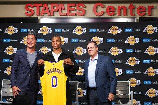 LOS ANGELES (AP) - Russell Westbrook was a Lakers fan from childhood, and he skipped school to attend their championship parades. After he became close friends with Kobe Bryant, they spoke about the responsibility and honor of playing for this decorated franchise.