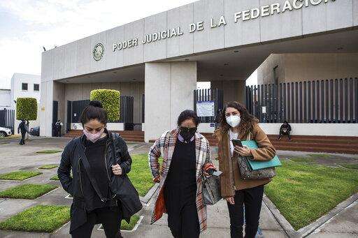 Carmen Sánchez, who survived an acid attack by her ex-partner seven years ago when she was 30, walks between her psychologist JazmÃn RamÃrez, left, and lawyer Jimena Saavedra, as they leave the Federal Judicial Branch building in Ciudad Nezahualcóyotl, State of Mexico, Mexico, Friday, July 22, 2021, after the court cancelled a hearing with Carmen's attacker amid an ongoing investigation into classifying her attack as an attempted femicide. Sanchez started a foundation that bears her name, seeking justice in her case, talking with other survivors, seeking out donors, psychologists and doctors. (AP Photo/Ginnette Riquelme)