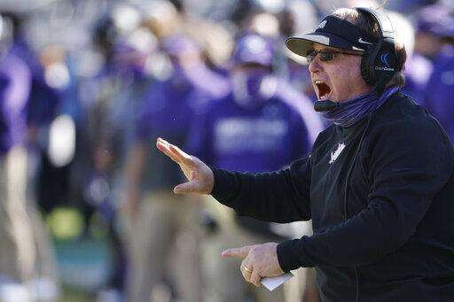 TCU head coach Gary Patterson gives instructions as TCU plays Oklahoma State during the first half of an NCAA college football game Saturday, Dec. 5, 2020, in Fort Worth, Texas. (AP Photo/Ron Jenkins) The Associated Press