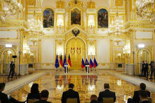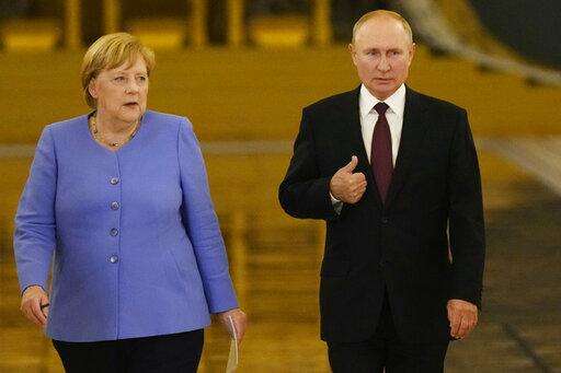 MOSCOW (AP) - German Chancellor Angela Merkel and Russian President Vladimir Putin reaffirmed their sharply different views of Russia's treatment of imprisoned Kremlin critic Alexei Navalny, democratic values and other major topics of dispute Friday but vowed to maintain a dialogue.