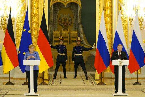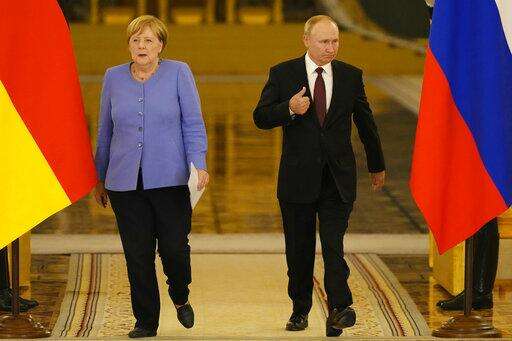 The German leader and Putin also discussed the nearly finished Nord Stream 2 pipeline that will carry natural gas from Russia to Germany. The project has angered the United States and some European countries, but the U.S. and Germany announced a deal last month to allow its completion.