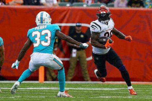 The Bengals have high hopes for receiver Ja'Marr Chase, the fifth overall draft pick in the spring who was a teammate of Burrow's on the 2019 LSU national championship team. But Chase, who sat out the 2020 season, keeps dropping passes. He dropped three in a row in a preseason loss to Washington and then couldn't keep the handle on Burrow's only pass in Sunday's game, a loss to the Dolphins.