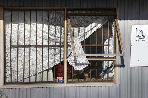 Police forensic staff work inside a mosque in Auckland, New Zealand, Saturday, Sept. 4, 2021. New Zealand authorities say they shot and killed a violent extremist, Friday Sept. 3 after he entered a supermarket and stabbed and injured six shoppers. Prime Minister Jacinda Ardern described Friday's incident as a terror attack. (AP Photo/Brett Phibbs)