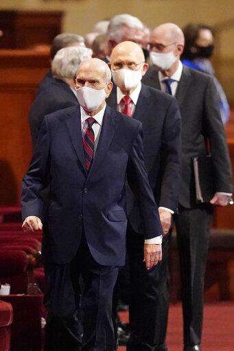 The pandemic wasn't a central topic in conference speeches Saturday, with most speakers focusing on issues of spiritual guidance. Several speeches were prerecorded by international members of middle-tier leadership panels who couldn't travel to the U.S. due to the pandemic.