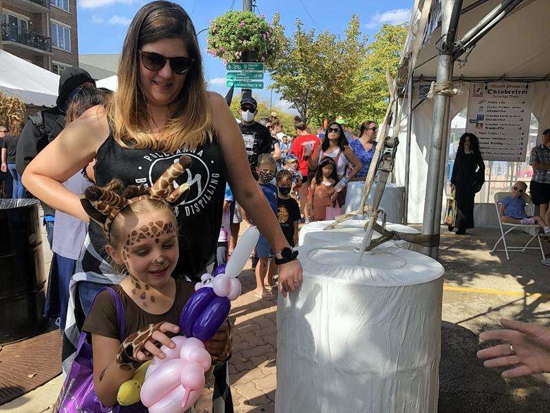There were a few adjustments. Bouncy houses, for example, were not set up. And the big tent, which normally is completely closed and heated became an open-air venue as the big flaps were opened. The combined family fall fest and Oktoberfest are the chief fundraiser for the downtown association so it can hold other events, such as pictures with Santa and this year, the return of a kids New Year's Eve party. "Kid-friendly, kid-oriented - if the kids don't find something they like, it's their fault," joked Lisanne Haney, a Mount Prospect resident who accompanied her daughter, Kristy, and grandkids Jameson and Sloan from Elmhurst.