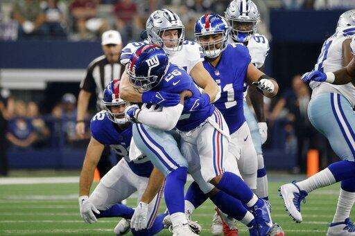 Despite losing Jones to a helmet-to-helmet hit on his run, the passing game was effective. Glennon took over and was 16 of 25 for 196 yards and a touchdown to rookie Kadarius Toney. New York scored 10 points in the second half and had another drive end at the Dallas 2 because the Giants were stopped on fourth down needing a TD. New York finished with 294 yards passing, with Toney carrying the load.