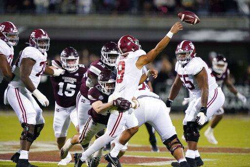 STARKVILLE, Miss. (AP) - Bryce Young threw for 348 yards and four touchdowns and No. 5 Alabama rebounded from a loss to rout Mississippi State 49-9 on Saturday night.