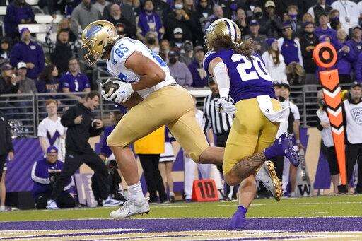 SEATTLE (AP) - Dorian Thompson-Robinson threw for two touchdowns and ran for another, Devin Kirkwood came up with a critical interception inside the final 5 minutes, and UCLA beat Washington 24-17 on Saturday night.