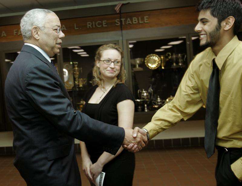 During his visit, Powell insisted on speaking with students and engaged them in conversation for 30 minutes.